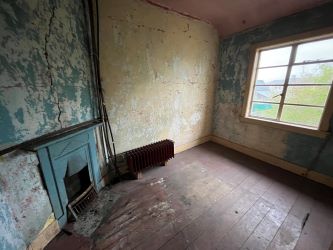 Bedroom 2: 2.4m x 3.0m - Single bedroom with timber floor and old fireplace.